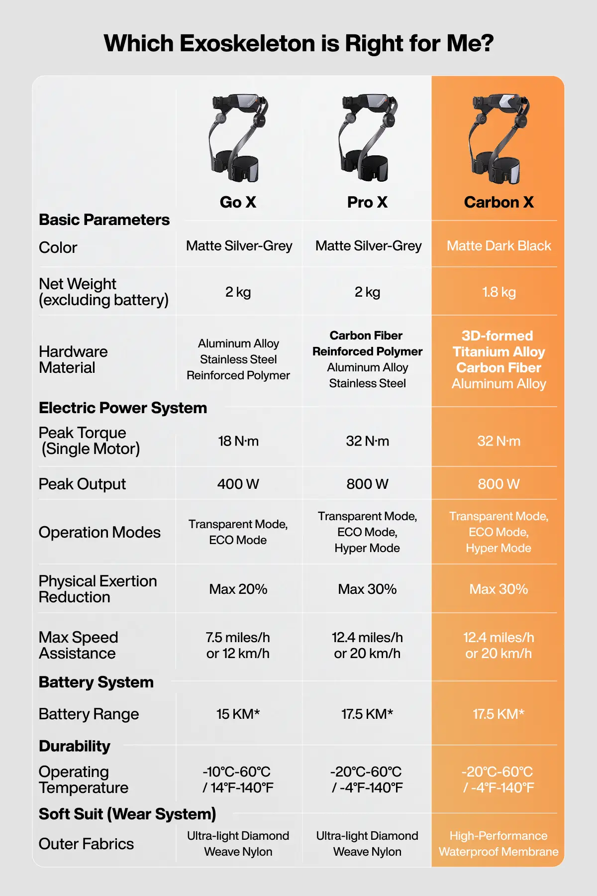 ² The 1.8 kg weight refers to the exoskeleton’s main frame and may vary depending on configuration.